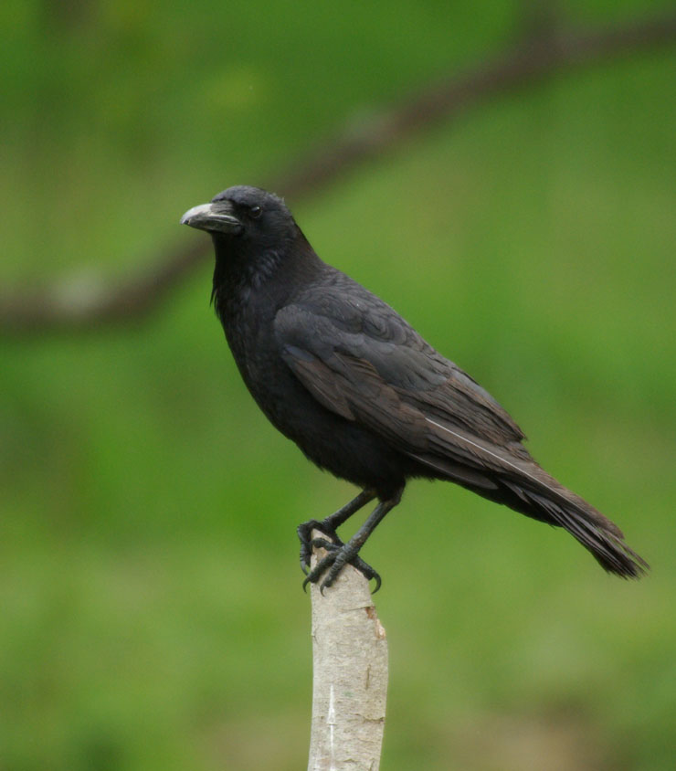 カラス カラス科 日本で普通に見られるカラス属のカラスは、留鳥のハシブトガラスとハシボソガラスの2種である。日常語ではこれらの全身が黒いカラスを通常は区別することはない。 生態翼長は50〜60センチ。雑食性でゴミや動物の死体をついばんでいるところがよく目撃される(都市部では、エサを得る為にごみ集積所を荒らすという行動や、田畑では、作物を荒らす行動が問題となっている)。脂身を好み、蝋燭や石鹸を持ち出す姿が目撃されている。繁殖期は春〜夏で、一夫一妻制で協力して子育てを行う。巣は樹上に小枝を組んで作るが、最近では電信柱や看板などに営巣することもあり、また巣の材料も針金・プラスチックなどさまざまなものを新規採用するようになっている(電線に針金類で営巣した場合、しばしばショートの原因となり、問題となっている)。営巣期間中は縄張り意識が強く、不用意に巣に近づいた人間や動物を攻撃するといった行動が見られる。抱卵期間は20日前後、巣立ちまでの期間は30〜40日程度。産卵数は2〜5(ハシブト)ないし3〜5(ハシボソ)程度。巣立ち後も2〜3ヶ月程度は家族でグループを組んで生活し、その後ひとり立ちをする。繁殖期以外は大規模な群れを作る。群れも仲間が窮地に陥ると他のカラスが助けに入ることもあるらしく、事故死したカラスを仲間のカラスが助けようとしている姿が目撃されている。 鳥類では最も知能が発達しているとされる。ただし、知能の程度はヒト科(ホモ属を除く)ほどの知能であるとする説や、大脳の体積がチンパンジーと同等であるとする説(サイエンス 2004年12月号)は極端なものであり、特定の能力を特定の見方によって誇張した解釈である。なお、実際のカラスの脳重量はわずか 10グラム程度にすぎない。このような歪んだ解釈をするのであれば、ミツバチや伝書鳩でさえ人間以上の知能をもつことになる。 協力したり、鳴き声による意思の疎通を行っている事が知られ、遊戯行動をとる事も観察されている。人間の個体を見分けて記憶したり、植物・哺乳類・鳥類などを区別して認識できるといわれている。仙台市の青葉山では、ハシボソガラスが道路にクルミを置き、自動車に轢かせて殻を割るという行動が報告されている。これはカラスの知能が非常に高い事の証左である。色が識別でき4色型色覚であり、人間と同じRGBの他にV(紫)も識別できる。1996年、神奈川県で鉄道のレールの上にカラスが石を置くという事件が頻発した。その後も同様の事件が全国各地で散発している為、鉄道各社は対策に苦慮している。電線にぶら下がって「ブランコ」のような遊びをしていた、神社の賽銭を盗み自動販売機でハトの餌を購入していると報道されたこともあった。