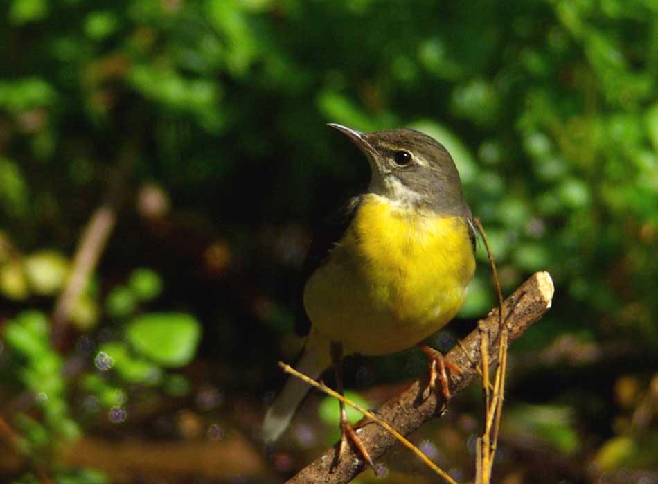 キセキレイ セキレイ科 分布日本では主に九州以北に分布し、留鳥または漂鳥。 夏場は渓流沿いなどに好んで住み、セグロセキレイ、ハクセキレイとは概ね住み分けている。積雪地に住むものは冬になると暖地へ移動し、冬場は市街地の水辺でも観察される。 冬場は単独で、夏場は番いで縄張り分散する。雄は特に縄張り意識が強く、同種およびセグロセキレイ、ハクセキレイと追いかけ回して縄張り争いをする様子もよく観察される。 特徴体長 20cm ほどで、ハクセキレイと同じか若干細めである。 頭から肩、背にかけてが灰色、上腹部が白色、下腹部が黄色で、他種と容易に見分けられる。またハクセキレイやセグロセキレイと同様、いつも尾羽を上下に振っているのが特徴的である。 生態食性は動物食で、日中は水辺を歩きながら水中や岩陰などに潜む虫やクモなどを捕えて食べる。また飛んでいる虫を捕まえるフライングキャッチをする様子も観察される。 夜は近隣の森などに塒を取る。 地鳴きは「チチン、チチン」で、ハクセキレイに似るがやや高め。飛翔時に鳴く。