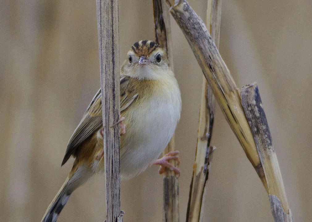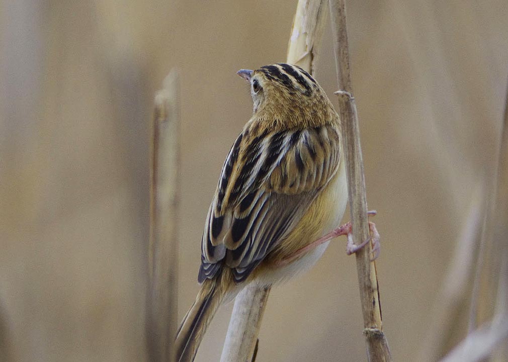 分布本州の関東平野北部以北で繁殖し、本州中部の太平洋岸で越冬する。 より詳細には、夏季に青森県(岩木川河口、仏沼)、茨城県(霞ヶ浦)、千葉県(利根川下流域)などで繁殖し、関東地方から瀬戸内海沿岸にかけての太平洋側で越冬し、雪の少ないヨシ原に広く分布していると考えられている(留鳥)。また、宮城県の河口域・湿地等で冬季の生息が確認されている。岩手県釜石市では捕獲記録があり、越冬地への渡りの途中であった可能性がある。 特徴形態全長11–14cm。尾羽は楔形で長い。上面の羽衣は褐色で、黒や黒褐色の縦縞が入る。体下面の羽衣は白い。体側面は褐色。眼上部にある眉状の斑紋(眉斑)は淡褐色。頬や耳孔を被う羽毛(耳羽)は淡褐色。翼は黒褐色で、羽毛の外縁(羽縁)は黄褐色。雨覆や三列風切には黒褐色の斑紋が入る。 嘴の色彩は黒く、下嘴基部は褐色。後肢の色彩は淡褐色。 生態海岸や河口、湖沼の周辺にある湿性草原、アシ原などに生息する。 食性は動物食で、昆虫、クモなどを食べる。 繁殖形態は卵生。繁殖期になるとオスは丈の高い草に止まったり、半円状に飛翔しながら囀る草の根元に枯草を組み合わせた楕円形状の巣を作り、6–8月に5–6個の卵を産む。メスのみが抱卵し、抱卵期間は約11日。雛は孵化してから約12日で巣立つ。 |