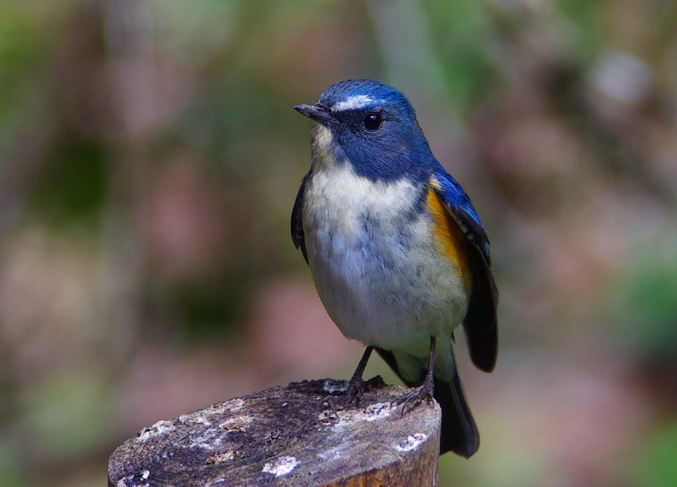 ルリビタキ形態全長14cm。尾羽の羽毛は青い。体側面の羽毛はオレンジ色で、腹面の羽毛は白い。 成鳥(生後2年)はオスの背面の羽毛は青く、幼鳥やメスの背面の羽毛は褐色。 生態森林に生息する。群れは形成せず単独で生活し、縄張りを形成し冬季にはジョウビタキ等と争うこともある。 食性は雑食で、昆虫類、節足動物、果実等を食べる。地表や樹上を移動しながら獲物を捕食する。 繁殖形態は卵生。樹上に枯葉や苔等でお椀状の巣を作り、6-8月に1回に4-5個の卵を産む。メスのみが抱卵し、抱卵期間は約15日。雛は孵化してから約15日で巣立つ。生後1年で性成熟する。ジュウイチに托卵の対象とされることもある。