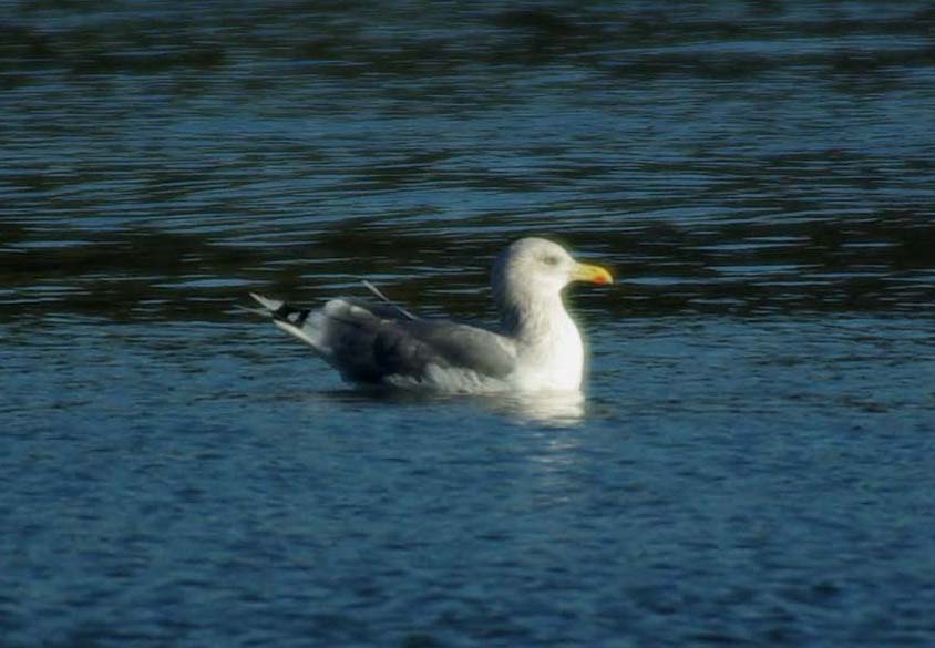 分布日本では冬鳥として渡来し、最も普通にみられる大型カモメ類。 形態全長約60cm。雌雄同色。背中と翼上面は明るい灰色で、頭部、首、腹、尾は白い。外側初列風切羽が黒く、先端に白斑がある。冬羽では後頭部から頸にかけて褐色の小斑がでる。くちばしは黄色く、下くちばしの先端近くに1つだけ赤い斑点がある。虹彩は黄色で、眼瞼(がんけん)は赤色。脚は薄いピンク。 若鳥は全身灰褐色で、くちばしが黒い。風切羽と尾の先は暗褐色。虹彩は褐色で、眼瞼は暗い赤褐色。 生態海岸や河口、内陸の湖沼に生息する。海が荒れる日には河口から大きな河川に移動したりする。コロニーで繁殖。しばしば大群をつくる。枯草や海藻で巣を作り、2〜3個の卵を産む。抱卵日数は24〜28日で、雌雄交代で抱卵する。 雑食性で、魚類や昆虫、動物の死骸等を食べる。 |
